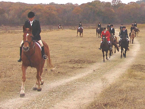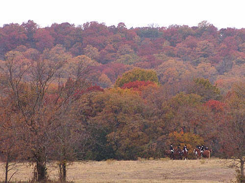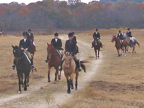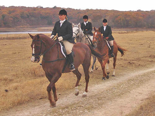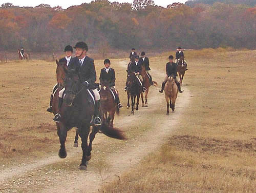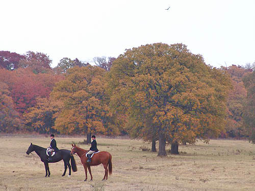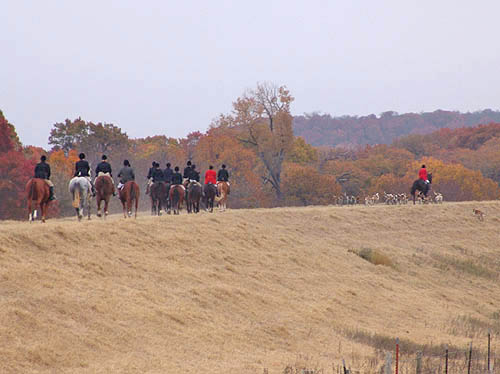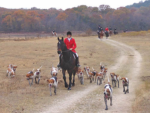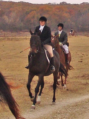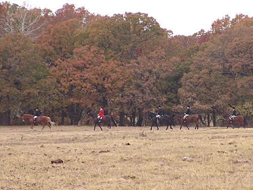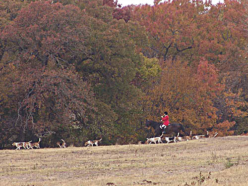 Chrissie skirting the woods and encouraging the hounds to hunt.